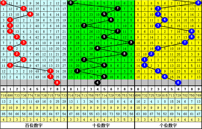 另外组选分布中,号码大小比为6:9,大小 号码走势基本相当;号码奇偶比为10:5,偶数号码开出比例较低;号码012路为4:6:5,基本持平。且每期奖号都与最近5期奖号有相同的号码。(统计见下表)