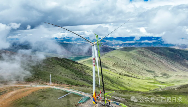 大唐八宿10万千瓦风电项目是全国已建成海拔最高风电,金上昂多—拉妥330万千瓦光伏电站成为全球一次性开工建设单体规模最大的光伏电站,青藏高原的风光水资源点亮西藏万家灯火,源源不断生产绿色动能。