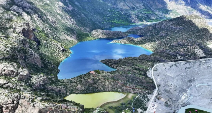 三色湖位于边坝县边坝镇普玉村,被誉为“心中最美的湖”。群山环抱中的三处相邻湖泊在阳光下分别呈现黑、白、黄三种色彩,十分神奇。远处雪山作景,近处绿树倒映湖面,仿佛置身人间仙境。