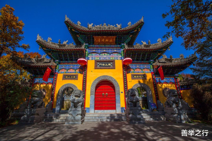 它们依山就势,俯仰古今。宫观楼阁错落层叠,飞檐如凤羽轻展,在秋色中勾勒出静谧而庄重的剪影。