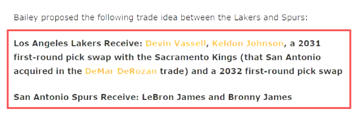 当然任何关于詹姆斯的交易设想都不得不面对一个现实问题:*他的合同中包含交易否决权。