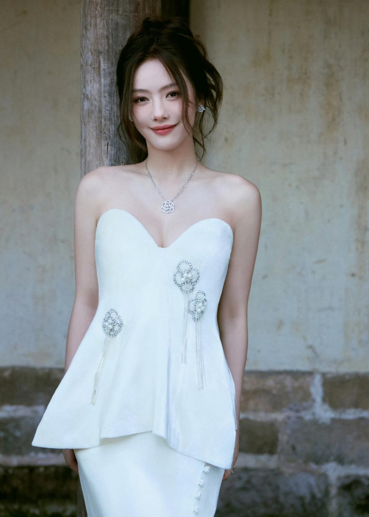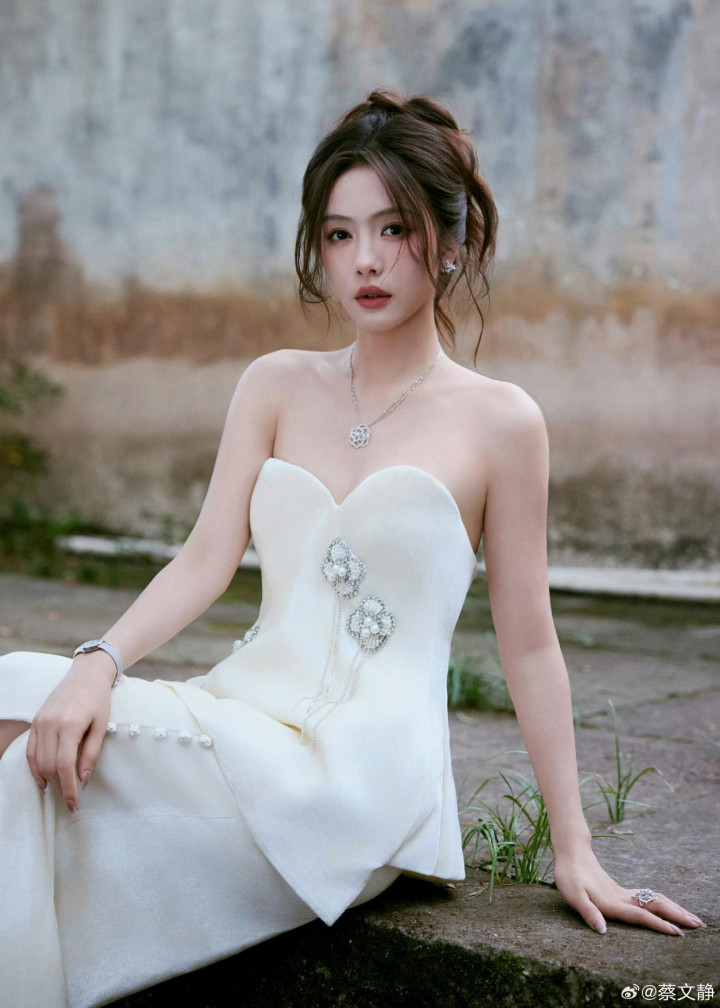 35 岁蔡文静抹胸裙装,借优雅身姿传递经典时尚魅力